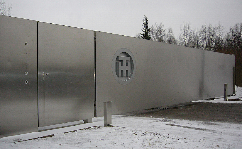 A 10.8m cantilevered sliding gate articulates the main entrance to the Herkules Industrial complex in Meuselwitz. The finely engineered nature of the bespoke design, operating as it does on a counter-balancing system, reflects the precision and detailing which the Herkules group brings to its production of industrial roll grinders.